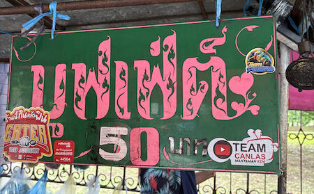 ルンピニー公園の、外の駐車場の屋台が立ち並んでいるところの一角にお店があります。屋台街なので探すのに一苦労ですが、こちらの看板が目印です!
