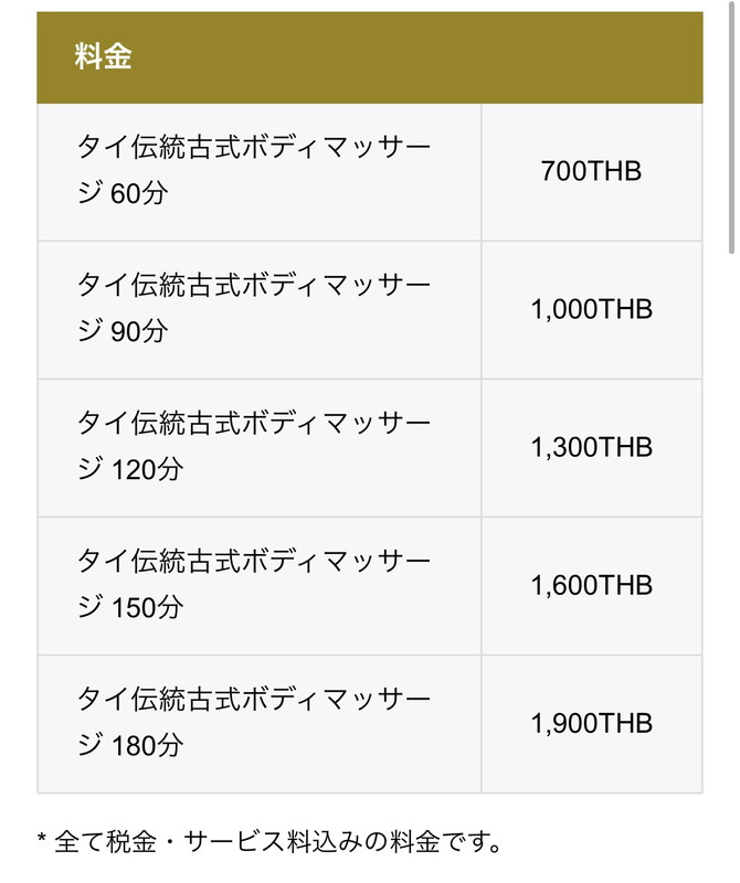 タイ古式は1時間700バーツ~