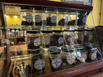 こちらのお店は紅茶を始めとするお茶のメニューが中心。注文カウンターにはたくさんの茶葉が並べられています。