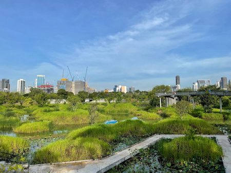 - その拡張エリアは「Benjakitti Forest Park(ベンジャキティ森林公園)」として整備され、都市における洪水対策(雨水貯留・浄化、湿地の水管理)や、生態系回復、自然と都市の共存のための“サステナブルな都市設計”が導入されました。