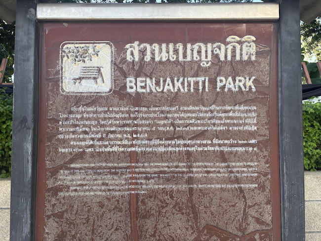 - この公園の名前「Benjakitti」は、ベンジャシリー公園と同様に、当時の王妃であったシリキット王妃の「5サイクル(60歳)」の誕生日を記念して付けられました。タイでは12年を1サイクルと数えるため、5サイクル=60歳にあたります。