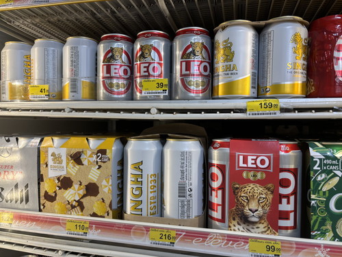 タイの国産ビールは日本より少し安い〜同等くらい。ちなみに、アサヒスーパードライなどの輸入ビールは少し高くなっています。