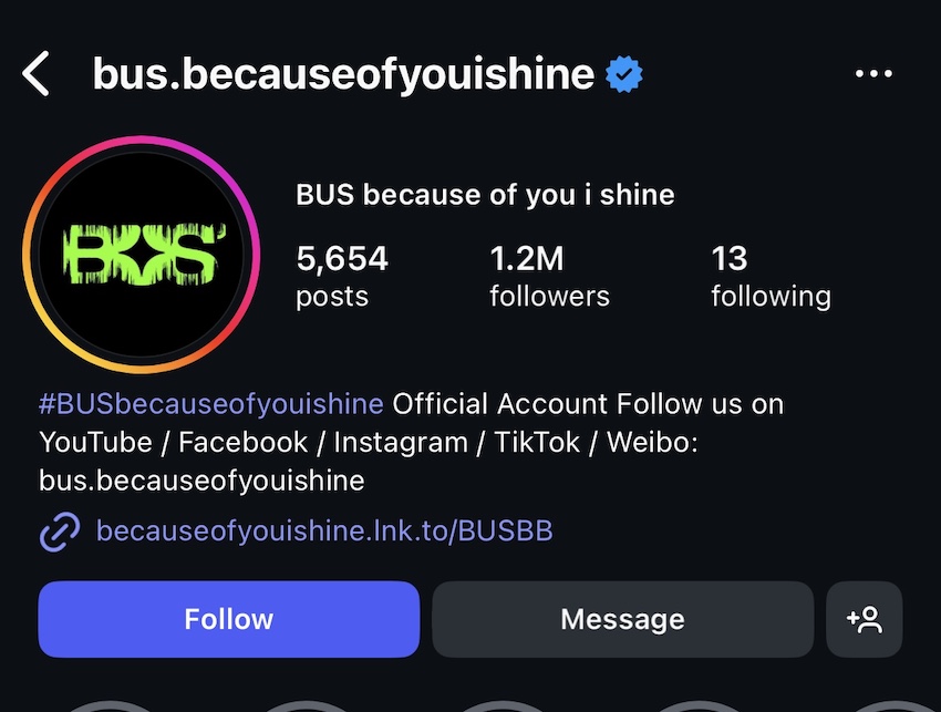 公式Instagram:https://www.instagram.com/bus.becauseofyouishine/