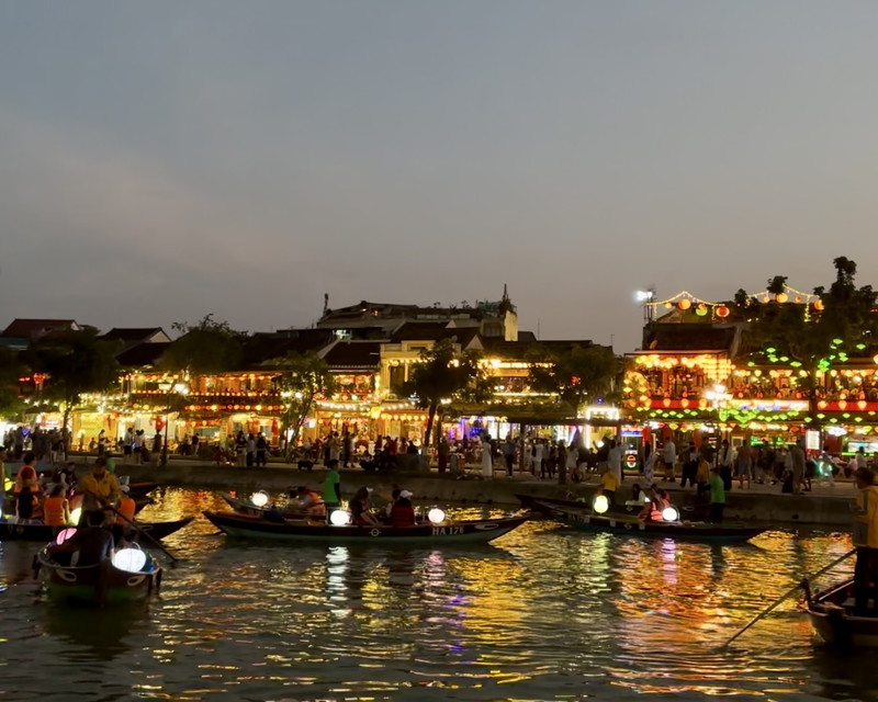 日が暮れると、ホイアンは世界で最も幻想的な街へと姿を変えます。街中を彩る色とりどりのランタンが川面に映り込む景色は、まさに「必見」の一言です。