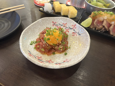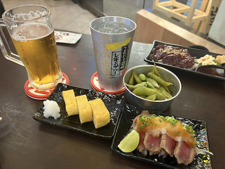 今回は、上記の串(または牛たたき)に、だし巻き卵または枝豆・好きなドリンクがついてくるというとてもお得な300バーツのセットをチョイスしてみました。