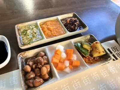 手前は八角の効いた豆、ニンジンと大根の酢漬け、ピリ辛キュウリです。