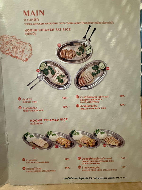 Hoongはカオマンガイのお店なので、鶏肉とごはんがワンプレートに乗ったメニューで複数種類展開されています。