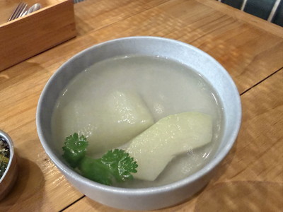 スープには冬瓜?が入っていました。アッサリしているのに鶏の出汁が効いてて美味しいスープです。