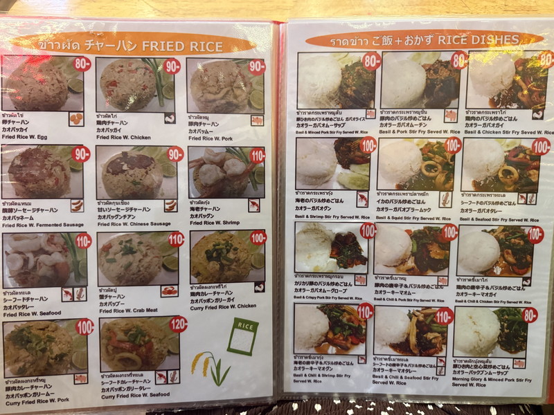 イサーン料理が中心のお店ですが、旅行者のお客さんが多いのでイサーン料理以外のメニューも充実。