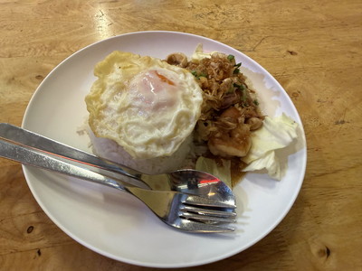 目玉焼きも追加して、辛さは控えめにして貰いました。