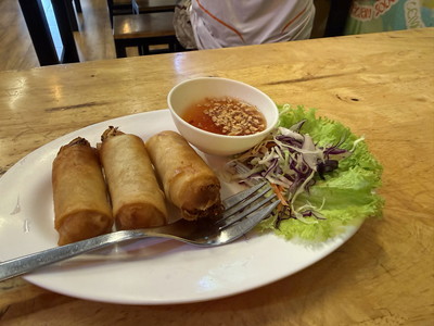 本日は海鮮のニンニク炒めと揚げ春巻きを注文しました。