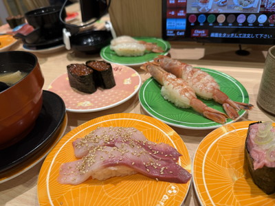 お寿司はエビやハマチ、イクラなどを注文。