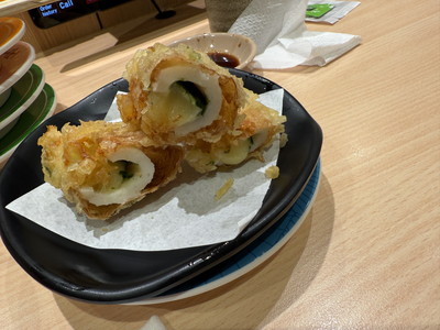 サイドメニューも種類豊富でした。こちらは竹輪の磯部揚げ(チーズ入り)。量が少なめなので、ちょびっとだけ食べたい人も注文できるのが嬉しい。