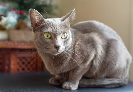 • コラートは、銀〜青みがかったグレーの短毛の猫で、瞳は黄緑〜緑系。体格は小〜中型、筋肉質でスマートです。別名は「Si-Sawat(シー・サワート)」。