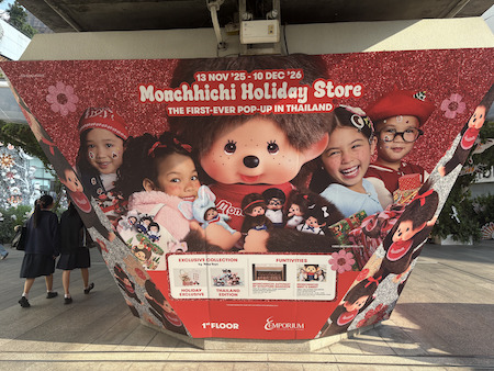 このポップアップではタイ限定デザイン(ムエタイ衣装やタイの制服スタイル)などのグッズを扱っていたり、巨大モンチッチのディスプレイやテーマパーク風の展示など、いわゆる“モンチッチ体験”を売ることで、ファン層が徐々に拡大しています。