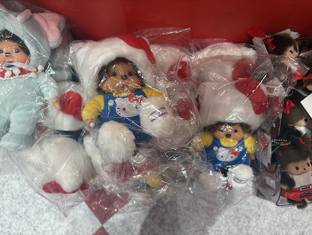 この他にも、ノーマルのモンチッチはもちろん、黄色や紫、ピンクなどといったカラフルな毛並みをしたモンチッチなどがたくさん置いてありました。