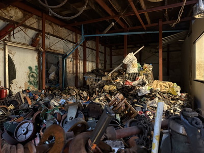 中に入るとこんな光景。廃材がたくさん置かれていて、既に閉鎖してしまった工場や作業場のような雰囲気です。薄暗くてなんだか怖い印象もあります。