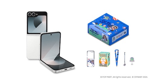Galaxy Z Flip6 本体と限定Crybabyフィギュア、さらにオリジナルデザインのアクセサリーがセットになった豪華なギフトボックス構成となっています。また、タイ国内での数量限定発売となり、ファンやコレクターの間で非常に高い注目を集めました。