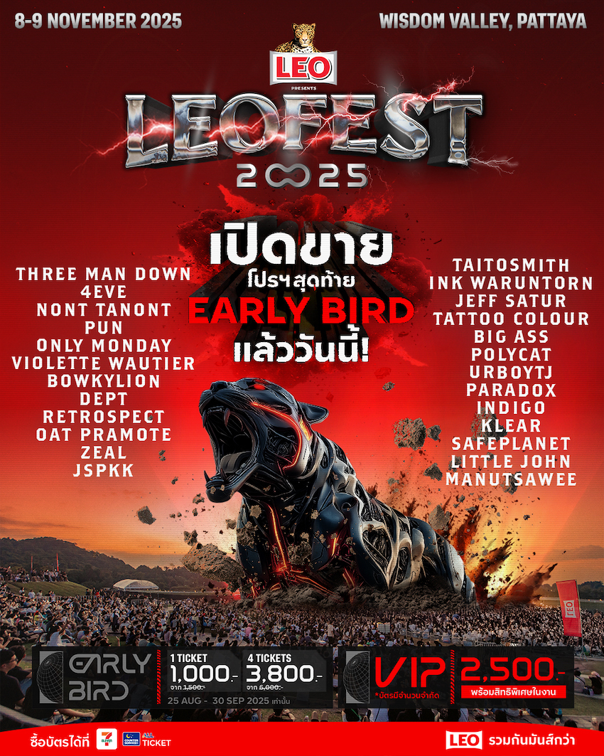 (2025年のLEO FESTのポスター。NONT TANONTや4EVEなどの国際人気が強いアーティストからタイのインディーズバンドまで多くのアーティストを呼んだ音楽フェスを開催しています。)