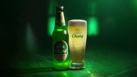 チャンビールは1995年、タイ・ビバレッジ社(タイ最大の飲料会社)から誕生しました。ブランド名の「Chang(チャン)」は、タイの国を象徴する動物「象」から取られており、ロゴには2頭の象が向かい合うデザインが使われています。誕生当初から価格を抑え、アルコール度数6%前後の力強い味わいで庶民層を中心に支持を集めました。特に農村部やローカル食堂では「気軽に飲めるビール」として急速に浸透しました。1990年代後半には、伝統的に強かったシンハーのシェアを抜き、国内市場の半分以上を占めるほどに成長。またスポーツスポンサーにも積極的で、プレミアリーグのエヴァートンFCのスポンサーを務めたことで国際的にも知名度を拡大。現在はアルコール度数を抑えた「チャンクラシック」や「チャンエクスポート」などさまざまな種類を展開し、より幅広い層に親しまれています。
