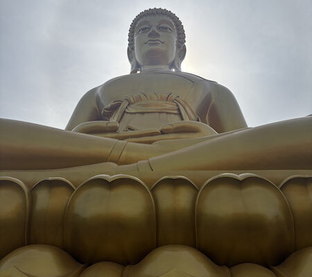 (ワット・パクナム。この大きな仏像は、徒歩約8分ほど離れたMRTブルーラインの最寄駅・バンパイ駅からも見えました!)