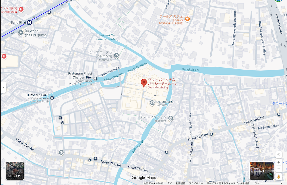 ✏️最寄駅は、MRTブルーライン・Bang Phai(バンパイ)駅から徒歩8分ほど。または、BTSシーロムライン・Wutthakat(ウッタカート)駅から徒歩15〜20分。徒歩が大変な場合は、バイクタクシーなどを使って行くことも可能です。